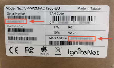 In the mail body please add the mac address and the serial number of the access point, as well as the address and the city where the device is located. You can find this information on the device's picture (below):
