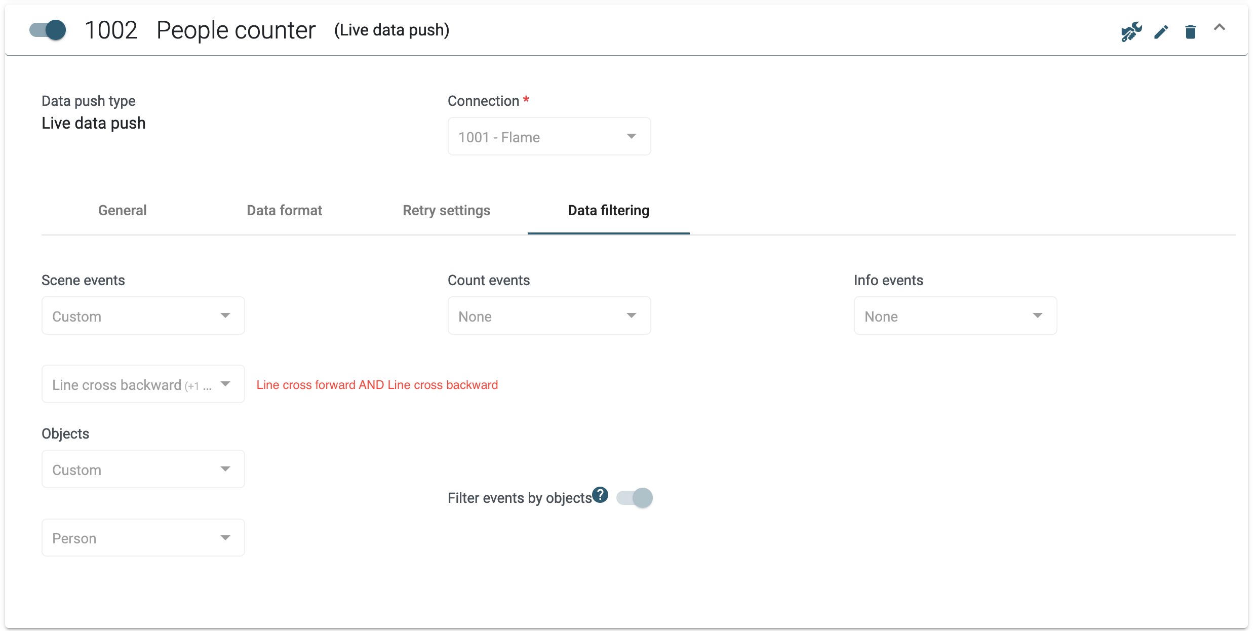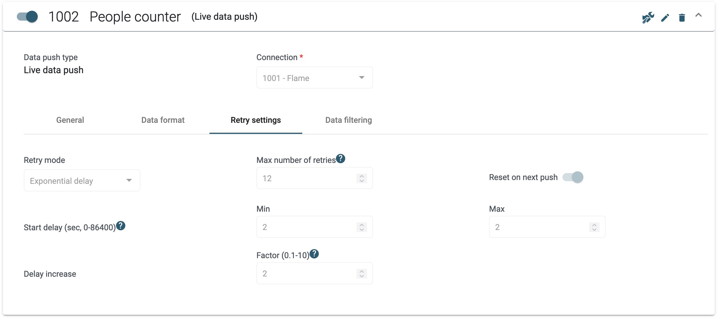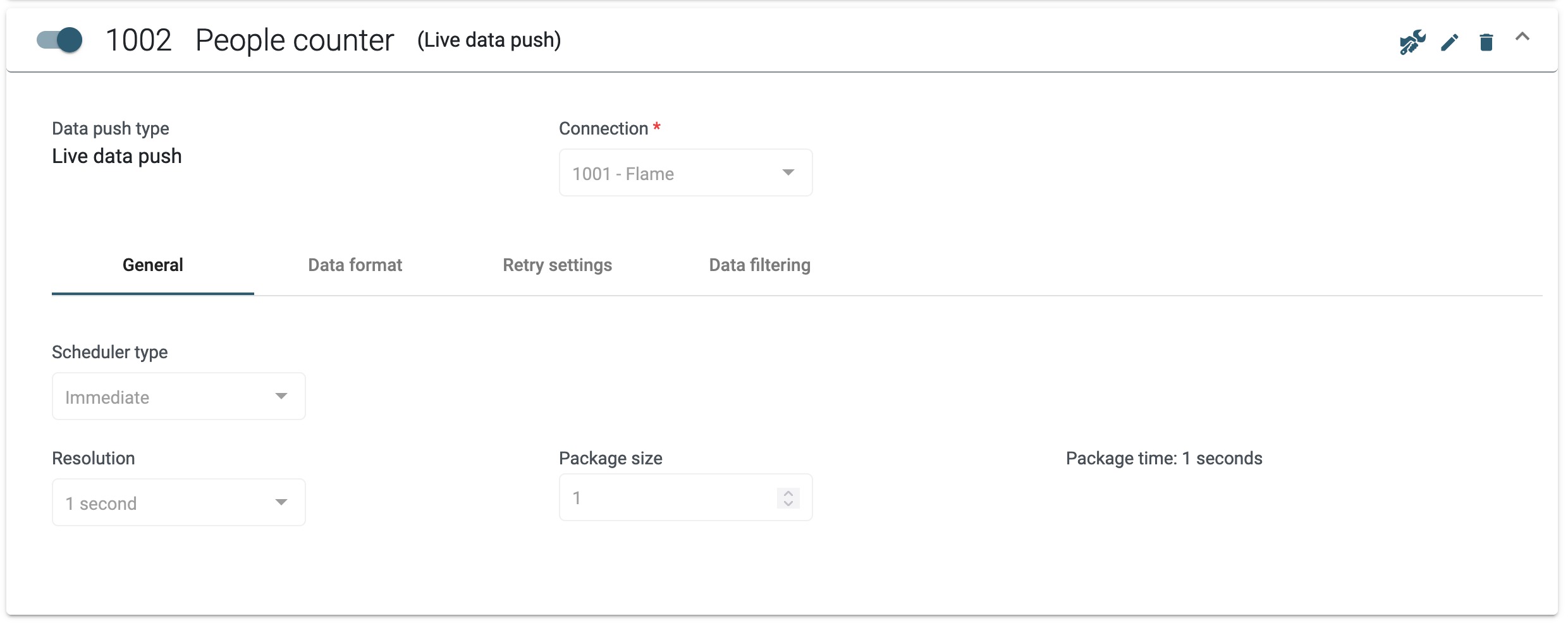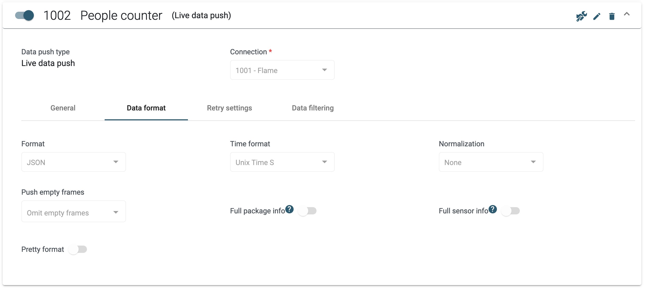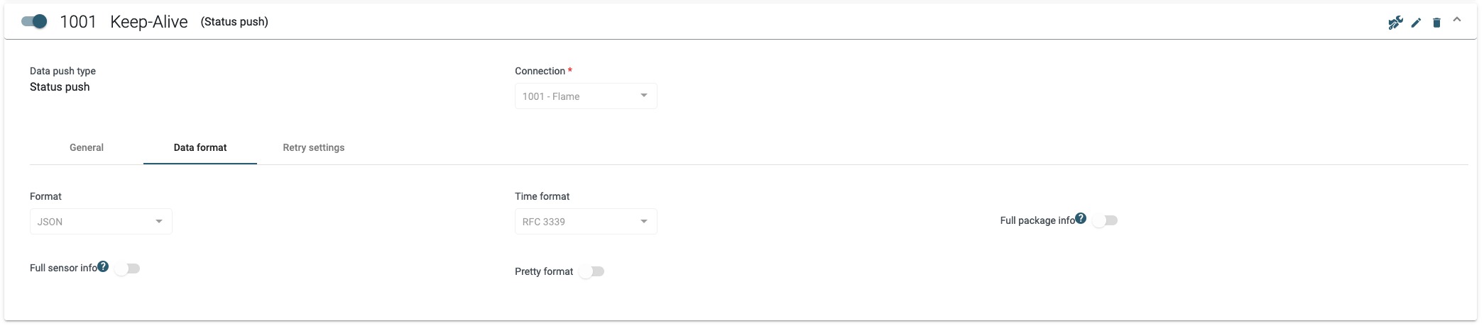 To configure the sending of counts and keep-alive, navigate through the WebUI to Settings > Singlesensor > Data Push and set up the following: