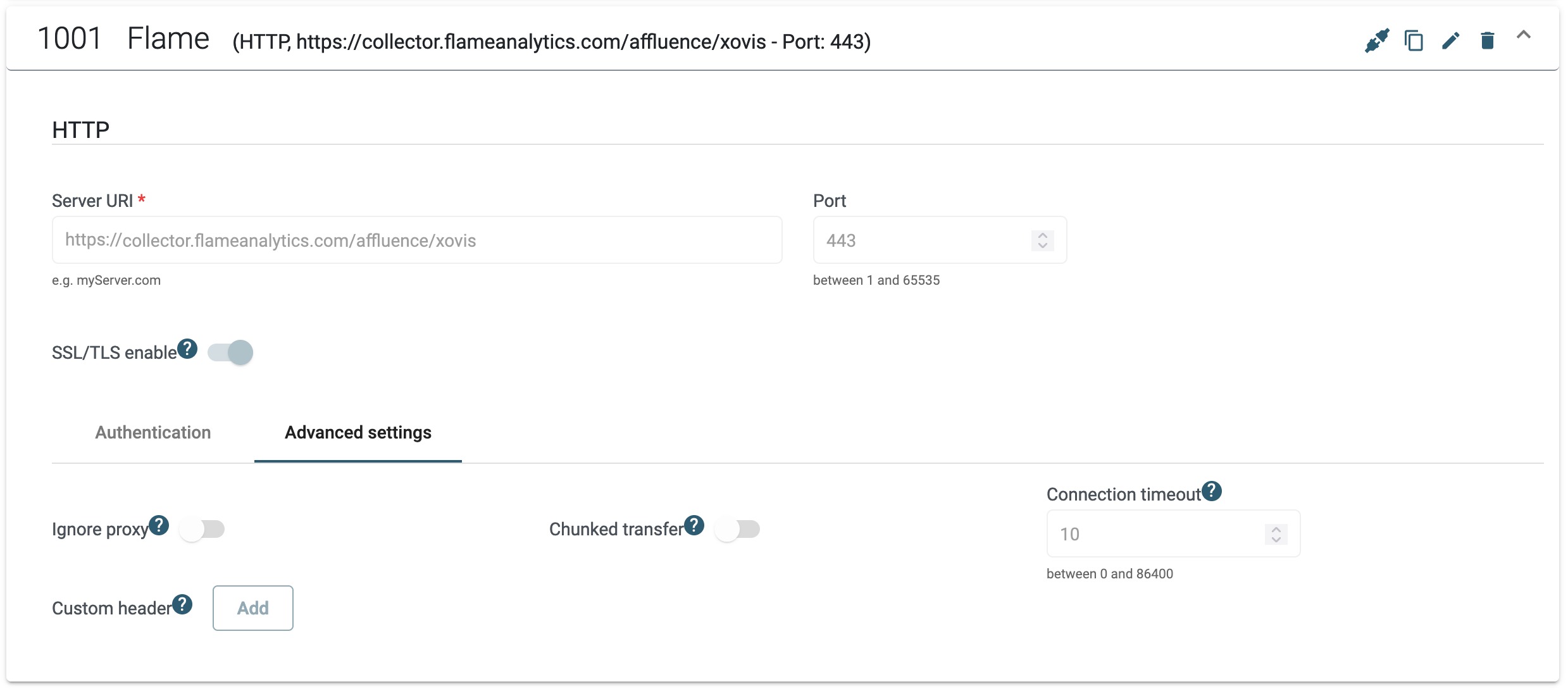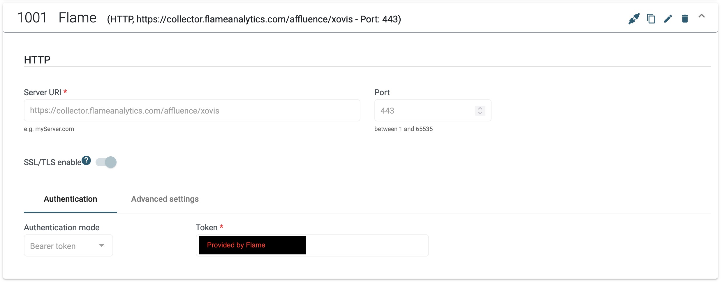 - Server URI: collector.flameanalytics.com/affluence/xovis