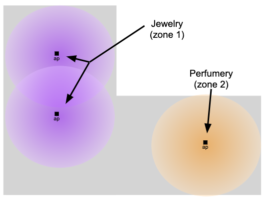 Whenever a device is located in an area of influence, it is assigned to its zone.