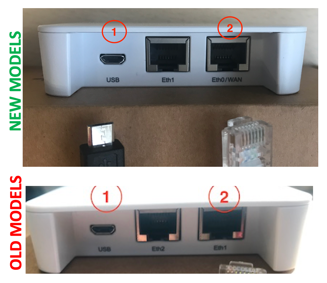 - Conecte un cable ethernet de categoría 5e o superior al puerto eth0 (o eth1 en el caso de los modelos más antiguos). Conecte el otro extremo del cable a un switch de una red LAN con DHCP. Si no dispone de servidor DHCP en su red, siga las instrucciones de configuración manual.
