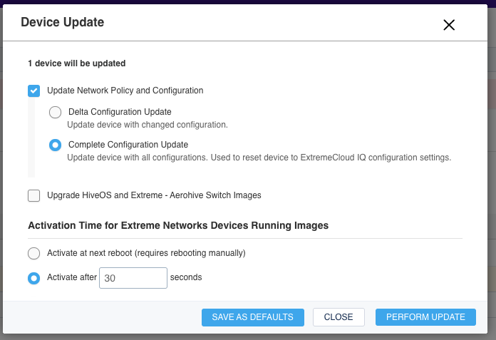 Once you have the 'Network Policy' complete, deploy the policy to all your AP's devices with 'Complete Configuration Update'