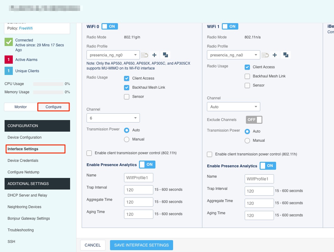 radio profile presencia_ng_ng0 presence enable radio profile presencia_ng_ng0 presence trap-interval 60 radio profile presencia_ng_ng0 presence aggr-interval 60 radio profile presencia_ng_ng0 presence aging-time 60 radio profile presencia_ng_na0 presence enable radio profile presencia_ng_na0 presence trap-interval 60 radio profile presencia_ng_na0 presence aggr-interval 60 radio profile presencia_ng_na0 presence aging-time 60